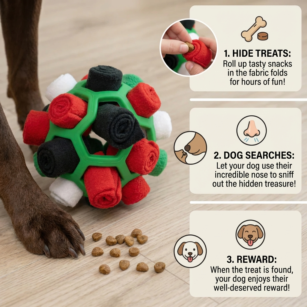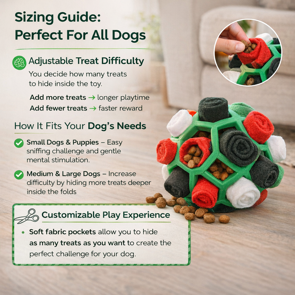 Unlike regular toys, SniffBuddy is designed for mental stimulation and scent work, which helps reduce boredom and destructive behavior while engaging your dog’s natural instincts.